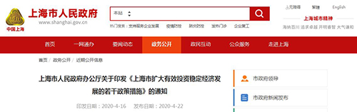 房訊網(wǎng)訊 4月22日,上海市人民政府辦公廳印發(fā)《上海市擴(kuò)大有效投資穩(wěn)定經(jīng)濟(jì)發(fā)展的若干政策措施》的通知,推出20條具體舉措擴(kuò)大有效投資、穩(wěn)定經(jīng)濟(jì)發(fā)展。