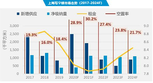 事實(shí)上,上海寫字樓市場整體空置率更甚于甲級市場。據(jù)高力國際最新統(tǒng)計(jì),一季度上海寫字樓整體空置率為19.2%,環(huán)比下降0.8個(gè)百分點(diǎn),但這一空置率預(yù)計(jì)將在2020年末達(dá)到28.9%。