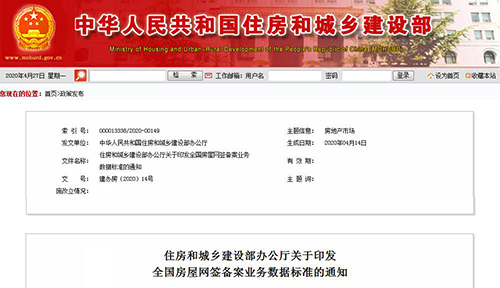 為推進房屋網簽備案系統建設規范化、標準化、便民化,推進房地產市場監測“一張網”建設,按照經國務院相關文件要求,住建部編制了 《全國房屋網簽備案業務數據標準》。