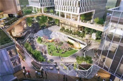 連接寫字樓、商業、酒店三大業態,雙層景觀社交場