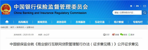 近日,銀保監會就《商業銀行互聯網貸款管理暫行辦法(征求意見稿)》向社會公開征求意見。
