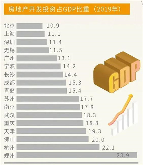 “房地產開發投資占GDP比重”被視為衡量一個地方經濟增長對房地產投資依存度的指標。比重越高,說明經濟對房地產投資依存度越嚴重。