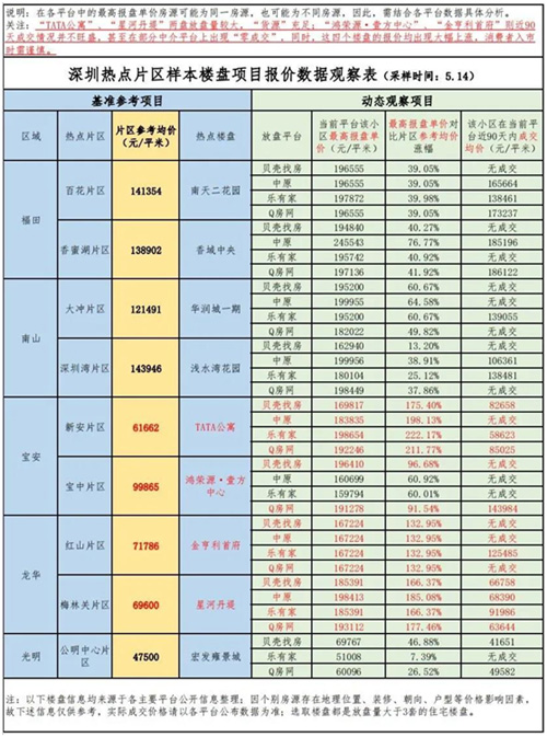 同屬寶安區(qū)的TATA公寓,在樂有家最高掛盤價(jià)每平方米198654元,片區(qū)參考均價(jià)為每平方米61662元,最高掛盤價(jià)對(duì)比片區(qū)均價(jià)的漲幅達(dá)到222.17%,而在貝殼找房、Q房網(wǎng)最近90天的成交均價(jià)在每平方米8萬(wàn)元左右。記者在鏈家APP上查閱發(fā)現(xiàn),TATA公寓在鏈家APP上的掛牌房源達(dá)到31套,掛牌價(jià)在每平方米8萬(wàn)至15萬(wàn)元之間,價(jià)格跨度非常大。針對(duì)上述異動(dòng),深房中協(xié)鄭重提醒廣大消費(fèi)者謹(jǐn)慎對(duì)待,對(duì)比綜合判斷,特別是針對(duì)近期市場(chǎng)繁雜多樣的信息時(shí)需保持清醒,結(jié)合自身情況,綜合判斷,理性入市,切勿盲目跟風(fēng)。據(jù)悉,“深圳熱點(diǎn)片區(qū)樣本樓盤項(xiàng)目報(bào)價(jià)數(shù)據(jù)觀察表”暫定每月月中定期公布,方便社會(huì)公眾及時(shí)了解、合理評(píng)估市場(chǎng)真實(shí)狀況。