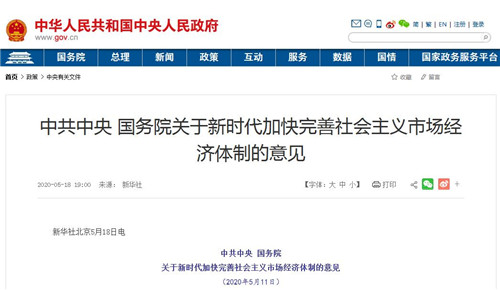 房訊網(wǎng)訊 5月18日,中共中央 國(guó)務(wù)院發(fā)布《關(guān)于新時(shí)代加快完善社會(huì)主義市場(chǎng)經(jīng)濟(jì)體制的意見(jiàn)》。