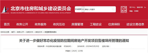 房訊網訊 5月20日,北京市住建委發布《關于進一步做好常態化疫情防控期間房地產開發項目售樓場所管理的通知》,統籌推進疫情防控和經濟社會發展,保障群眾正常生產生活秩序,扎實做好房地產開發項目售樓場所常態化疫情防控。
