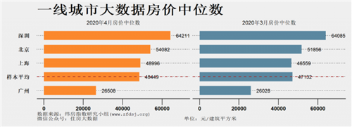 一線城市房價中位數的平均值為48449元/建筑平方米,比上月漲1317元/建筑平方米。
