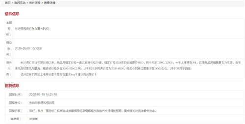 去年5月,有市民向長(zhǎng)沙市市長(zhǎng)信箱寫(xiě)信反映,2019年春節(jié)以來(lái),其注意到長(zhǎng)沙成交的限價(jià)地限定的毛坯最高售價(jià)相比于周邊在售的樓盤(pán)價(jià)格上漲了3成左右,同一個(gè)地段甚至地段位置稍差的,一年時(shí)間上漲3成,其好奇長(zhǎng)沙住宅最高限價(jià)是怎么確定的,是否真正科學(xué)合理。