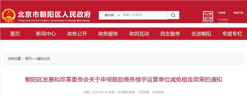 朝陽區(qū)發(fā)展和改革委員會關于申報鼓勵商務樓宇運營單位減免租金政策的通知