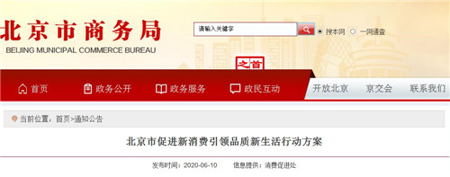 房訊網訊 6月10日,北京市商務局官網發布《北京市促進新消費引領品質新生活行動方案》,精準有序推動復商復市,多措并舉促進消費提檔升級。