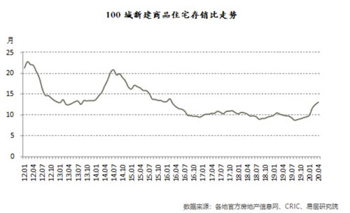 存銷比方面,4月份100個城市新建商品住宅存銷比即庫存去化周期為13.1個月,這也意味著市場消化完這些庫存需要13.1個月的時間,即大于1年。