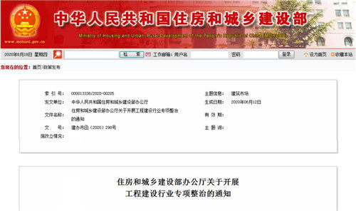 住房和城鄉建設部辦公廳關于開展工程建設行業專項整治的通知