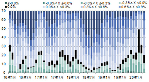 圖3:70個大中城市新建商品住宅銷售價格環比變動情況,按城市線級