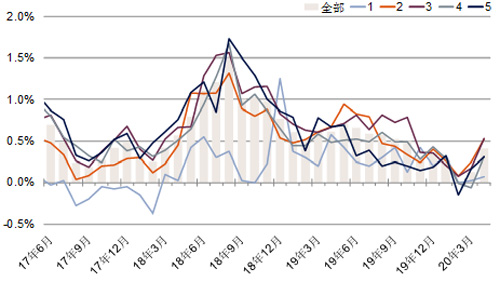 圖2:70個大中城市新建商品住宅銷售價格環比變動情況,按城市線級