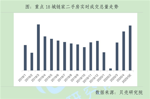 “整體交易量的大幅增長,與疫情推遲了需求的釋放、五一小長假便利期和房貸利率下滑影響購房者預期有關。”貝殼研究院分析。