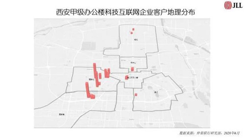 仲量聯行西安商業地產部總監何娜表示,作為西安戰略新興產業,科技互聯網企業成為辦公樓需求的重要支撐,產業位列西安辦公樓市場新增需求前三名。對比過去三年間科技互聯網企業在西安甲級辦公樓中的分布,不難發現,依托科技互聯網產業優勢,高新區兩大商務區吸引了大批科技企業進駐,已形成產業聚集效應,且企業選址越來越具有鮮明的特色需求和產業驅動的趨勢。例如中資大客戶華為在西安的布局選址,企業從戰略角度關注區域間的聚集和樓宇間的分散,是企業客戶選址需求多元化的表現。