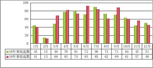 圖1 2019年全國房屋市政工程生產安全事故起數情況