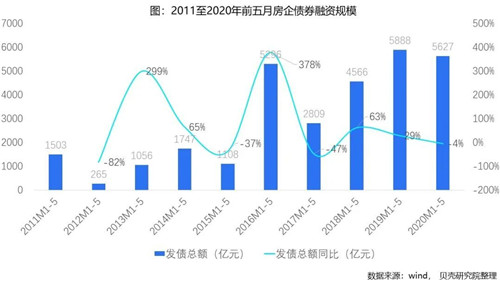從宏觀面來看,房企的融資規模和融資成本的確景氣度明顯。據貝殼研究院發布的數據,今年前5個月房企境內外債券融資累計約5627億元,融資規模為2019年全年的48%,全年房企融資規模有望超越2019年。此外,房企發債的利率也進一步降至低位。