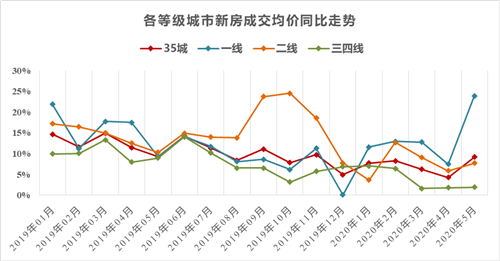 5月新房成交均價同比均上漲,一線城市漲幅最顯著