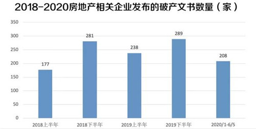 疫情加速了房地產行業的洗牌。人民法院公告網顯示,截至2020年6月5日,今年房地產企業的破產數量已經達208家,超過2018年上半年的177家破產數量,與2019年同期相對持平。