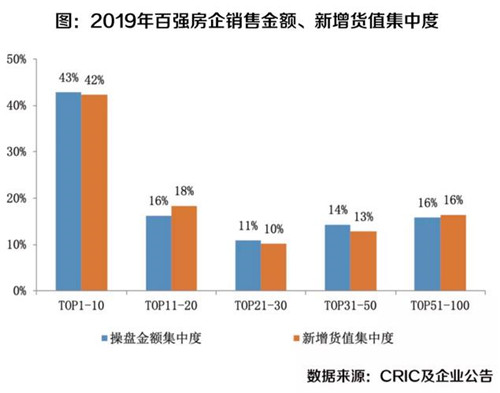 數據顯示,2019年銷售排行榜TOP50房企權益銷售金額在百強企業內的集中度達到43%,幾乎占據行業一半,小房企的生存空間不容樂觀。