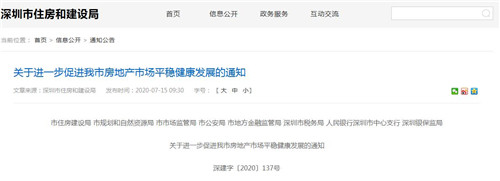 市住房建設局 市規劃和自然資源局 市市場監管局 市公安局 市地方金融監管局 深圳市稅務局 人民銀行深圳市中心支行 深圳銀保監局關于進一步促進我市房地產市場平穩健康發展的通知