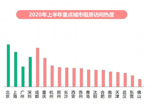 30日,58同城、安居客發布《2020年上半年樓市總結》報告。報告指出,從不同城市的租房訪問熱度來看,2020年上半年,北京租房熱度依然領先全國,作為網紅城市的成都租房熱度不減,熱度僅低于北京,重慶、杭州、鄭州等新一線城市的租房熱度排名也相對靠前。