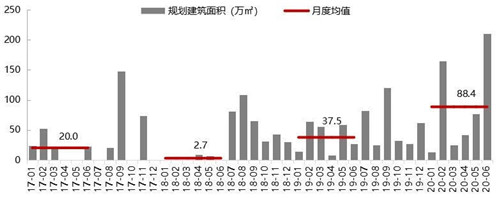 圖:2017年以來上海商品住宅用地成交面積走勢
