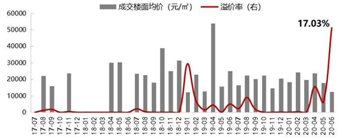 圖:2017年以來上海商品住宅用地樓面價及溢價率走勢