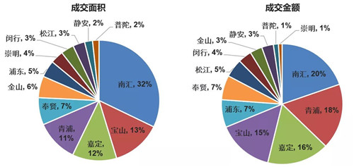 從成交金額來看,南匯、青浦、嘉定、寶山4區(qū)同樣位居前列,4區(qū)土地成交金額占比合計68.8%;其中,南匯成交金額占比全市最高,為19.7%。