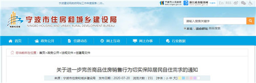 為貫徹落實中央和省、市有關部署要求,切實保障居民自住需求,抑制投機投資行為,按照《關于進一步保持和促進我市房地產市場平穩健康發展的通知》(甬建發〔2020〕56號)要求,現就完善商品住房銷售行為有關事項通知如下: