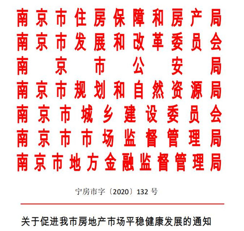 房訊網訊 7月23日凌晨,南京七部門聯合印發《關于促進我市房地產市場平穩健康發展的通知》,《通知》提出,加大住宅用地供應力度,支持剛性購房需求,加強熱點樓盤銷售管理,完善住房限購政策,規范新建商品住房裝修行為等九項新政。