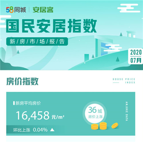 近日,58同城、安居客發布2020年《7月國民安居指數報告》(后文簡稱《報告》)顯示,相較上月,7月份房地產市場找房熱度有所回升,總體波動不大;購房者信心指數環比上漲3.1%。