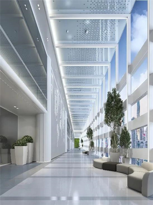 長廊由通透落地玻璃建造,挑高7.5米、長150米,成為一條連接金科成果展廳、融合型商業交流空間及金融科技產業孵化加速空間的紐帶。