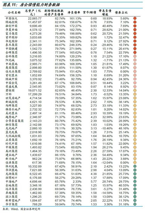 從企業端看,部分高負債、短期債務壓力大的房企,將承受更大的壓力。國金證券首席分析師周岳在近日的一份研報中指出,房企剔除預收賬款的資產負債率整體偏高,38家房企該比率超過70%,建業地產、融創中國、中南置地、綠地控股等10家房企剔除預收賬款的資產負債率超過80%。凈負債率指標方面,超過半數房企在該比率上小于100%,泰禾集團、富力集團、華夏幸福、融創中國、首開股份、華發股份、中國鐵建、中南置地、奧園集團、首創置業等16家房企凈負債率大于100%。