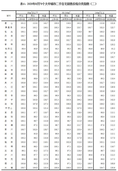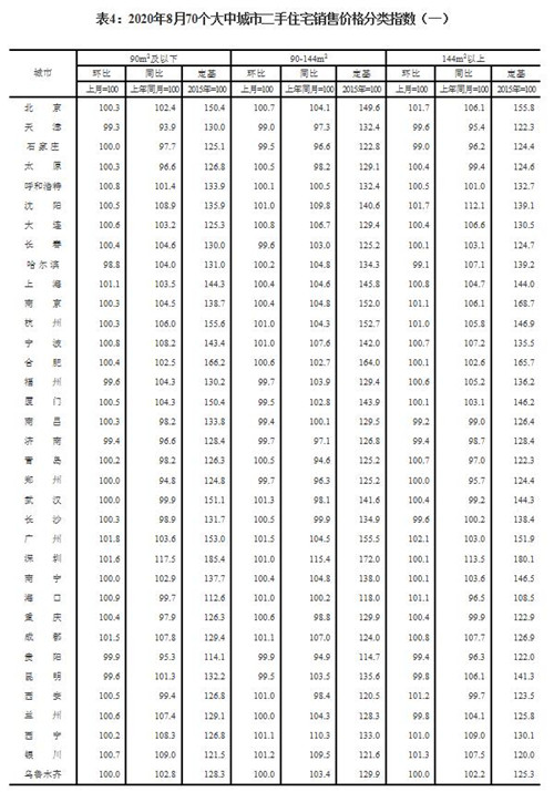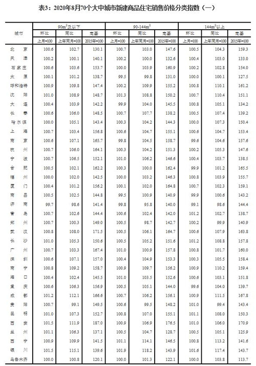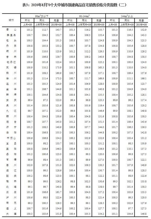 房訊網(wǎng)訊 9月14日,國家統(tǒng)計局發(fā)布2020年8月份70個大中城市商品住宅銷售價格變動情況。