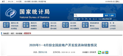房訊網訊 9月15日,國家統計局發布2020年1—8月份全國房地產開發投資和銷售情況,數據顯示,1-8月份全國商品房銷售額96943億元,增長1.6%。