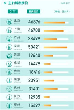 58同城、安居客《8月國民安居指數報告》顯示,8月67城新房在線均價為16481元/㎡,環比上漲0.14%,在67城中有33城新房在線均價環比上漲。主力城市中深圳相比上月略微下降,新房在線均價為50421元/㎡。北京、上海新房均價分別以46876元/㎡和46788元/㎡排名第二和第三。廣州、南京新房在線均價均在2萬元/㎡水平之上,新一線城市中的杭州新房在線均價則達到31401元/㎡,天津跌出2萬元/㎡行列,為19640元/㎡。城市房價環比漲幅TOP5的城市分別為無錫、呼和浩特、漳州、西安和九江,其中無錫環比增幅最高達到8.3%,呼和浩特和漳州環比漲幅也都超過7%。