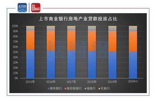 圖2:A股上市商業銀行2015-2020H1房地產業貸款投放占比