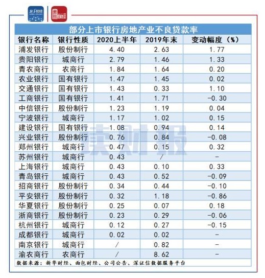 梳理中報信息發現,上市商業銀行中僅20家銀行披露了2020年上半年房地產業不良貸款率。