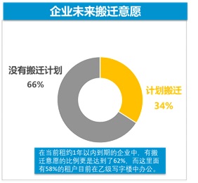 更多的新項目入市和市場租金下調為企業提升辦公環境和降低租賃成本提供了更好的時間窗口。值得注意的是,在當前租金下行且持續高供應的環境下,企業在市場面臨了更多的選擇,有更好的機會去選擇性價比更高的辦公樓,因此目前有搬遷意愿的企業占比達到了34%。如果再進行細分,在當前租約1年以內到期的企業中,有搬遷意愿的比例更是達到了62%,而這里面有58%的企業目前在乙級寫字樓中辦公。究其背后的潛在原因主要有兩個,其一,當甲級寫字樓向下調整租金時,對于低級別的樓宇明顯產生了更高的性價比和競爭優勢,經營狀態較好的乙級樓宇租戶有意愿進行搬遷;其二,乙級樓宇中普遍多是抗風險能力較差的中小企業,疫情的影響反映到其辦公需求層面是在三季度,企業根據自身經營情況調整下一階段的經營策略,不排除一些企業會搬遷并縮減面積到更便宜的產業園區辦公。