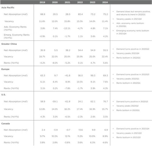 “我們試圖通過深入、科學地審視這場疫情所產生的力量以及對寫字樓行業基本面產生的影響。”戴德梁行首席經濟學家、全球研究部主管Kevin Thorpe稱,“我們研究了很多因素,包括失業、辦公室空置率和租金率、地理特征以及在家辦公的趨勢,最終預測全球寫字樓市場將全面復蘇。當然,所有房地產都具有強烈的地方性,并不是每一個地方市場都會走同樣的復蘇之路。”