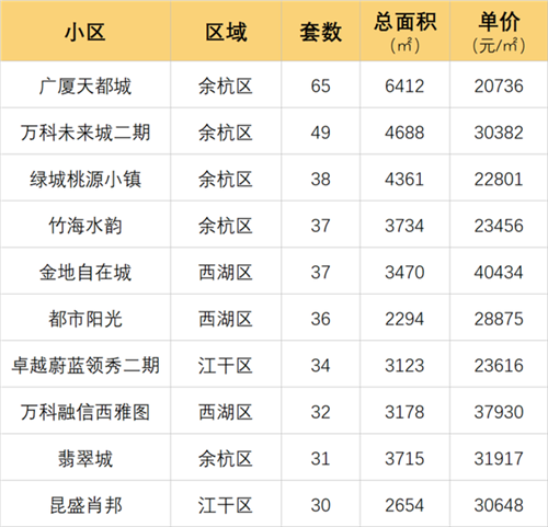 根據杭州我愛我家數據研究院提供的榜單(數據統計截至8月30日),8月成交量高居榜首的小區是廣廈天都城,一共成交了65套,均價為20736元/㎡。廣廈天都城有多個苑,目前在透明售房網上顯示掛牌量最高的為天河苑,現有108套掛牌房源。其近月成交均價23820元/㎡,與今年年初的價格相差無幾。