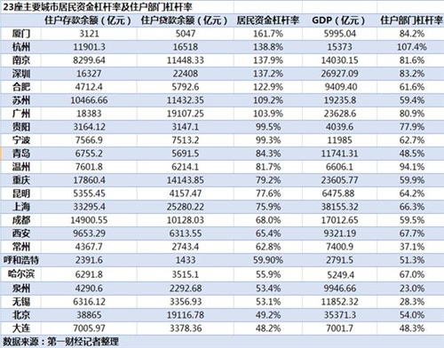 這幾個城市的居民資金杠桿率高,與房價水平較高、居民投資氛圍較濃有關。