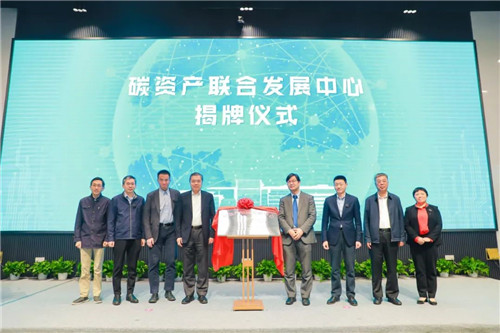 主題演講結束后,在與會領導和嘉賓們的共同見證下,北京綠色金融與可持續發展研究院院長馬駿、北京金融街資本運營中心總經理程瑞琦、北京法華文化交流中心理事范希文三方共同按下"北京中歐綠色金融協會"籌備工作啟動按鈕。隨后,由中國投資協會綠色發展中心、南京大學(潥水)生態環境研究院、湖北碳排放權交易中心、國家能源集團、清華大學建筑節能研究中心共同為"碳資產聯合發展中心"正式揭牌,標志著"碳資產聯合發展中心"正式落戶于新動力金融科技中心。