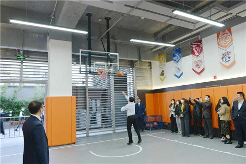 活動當天,北京市東城區和平里街道副主任田迪,CBA中籃聯(北京)體育有限公司CEO張雄,光大銀行安定門支行副行長杜學敦,大悅城控股北京大區寫字樓與產業管理中心總經理、中糧·置地廣場副總經理馬佳音,中糧·置地廣場副總經理趙光明出席了“置地有聲、熱血集結”中糧·置地廣場CBA體育街區的開街儀式。在全場人員的見證下,嘉賓們共同為CBA體育街區揭牌,并紛紛下場體驗,與首批球友們投籃互動。
