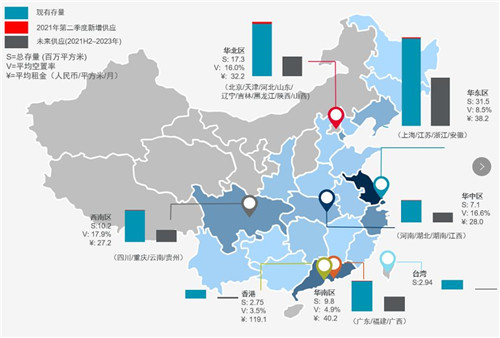 報告指出,2021年第二季度,經濟發展持續向好。二季度制造業恢復勢頭凸顯,新業態新動能發展加快。整體物流市場活躍度提升, 華東地區、華南地區高標倉庫租賃問詢和交易增多,華北、華中、華西南地區市場表現平穩。核心城市呈現供不應求的局面,周邊城市受益于需求外溢影響,租賃需求呈現旺盛態勢。