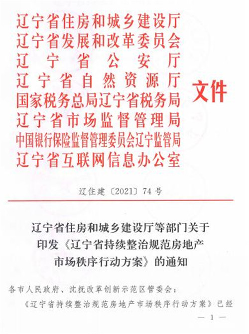 房訊網訊 11月10日,遼寧省住房和城鄉建設廳會同多部門聯合發布《遼寧省持續整治規范房地產市場秩序行動方案》,要求各地以問題為導向,重點整治人民群眾反映強烈、社會關注度高的突出問題,維護房地產市場平穩健康發展。集中整治行動自2021年11月開始,持續到2024年12月。