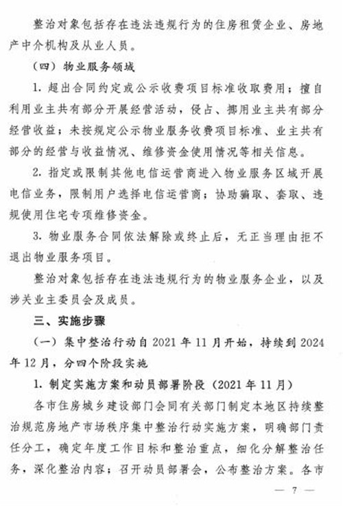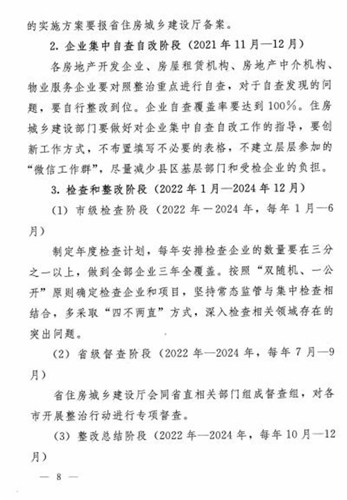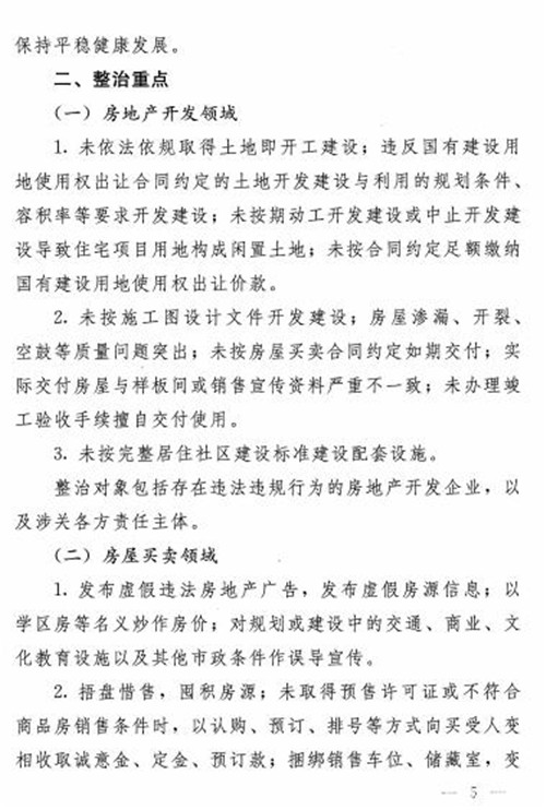 內容指出,要按照“堅持群眾參與、開門整治;堅持齊抓共管、綜合整治;堅持標本兼治、長效整治;堅持量力而為、量力而行”四項基本原則,對房地產開發領域、房屋買賣領域、住房租賃領域、物業服務領域進行重點整治。