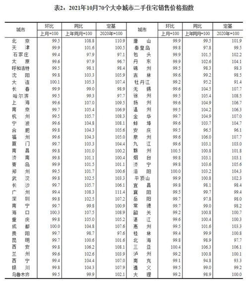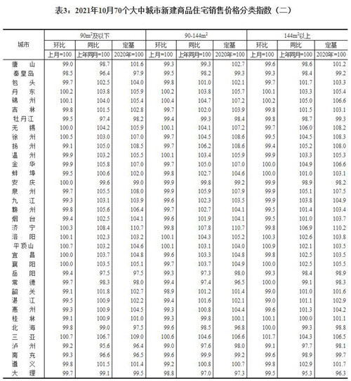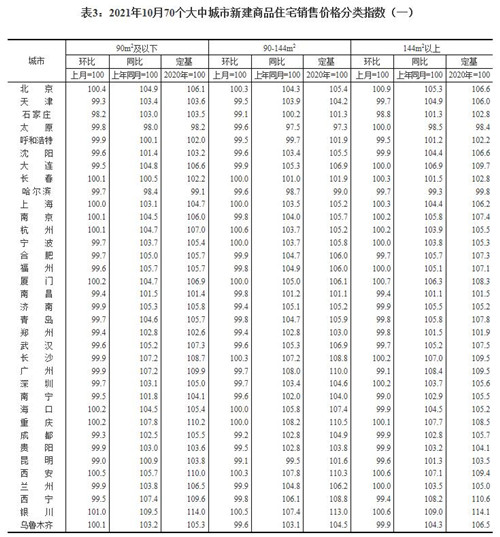 房訊網訊 11月15日,國家統計局發布10月份70個大中城市商品住宅銷售價格變動情況。