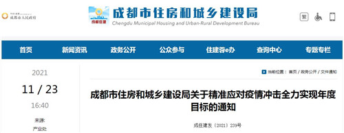 房訊網訊 11月23日,成都市住房和城鄉建設局發布關于精準應對疫情沖擊全力實現年度目標的通知,要求進一步強化企業服務力度,優化營商環境,促進企業穩產滿產,確保完成年度目標。